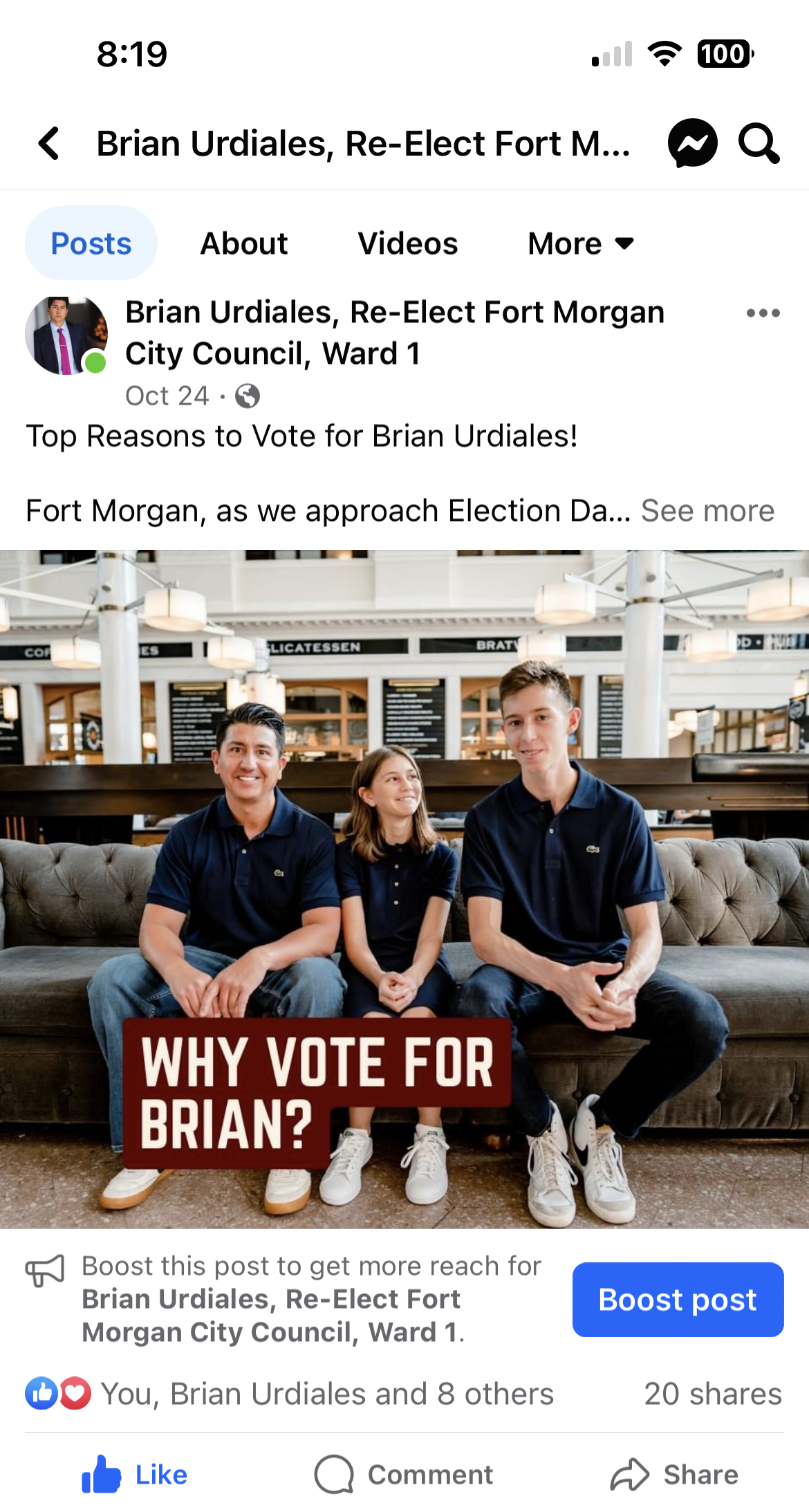 Brian Urdiales, a dedicated small business owner and long-time resident of Morgan County, sought to build a meaningful connection with his community through a straightforward and approachable social media campaign. Passionate about representing his neighbors, friends, and fellow business owners, Brian wanted a campaign that reflected his deep ties to the local community.